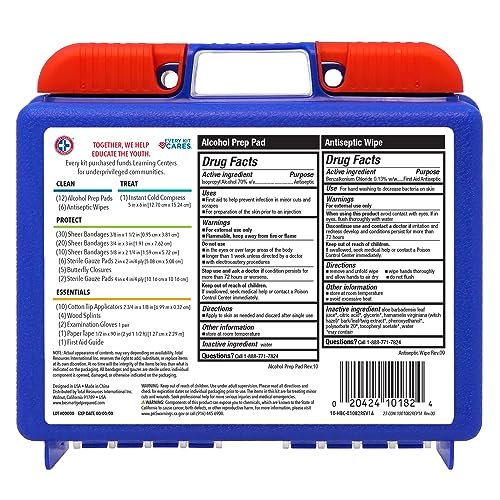 Be Smart Get Prepared 110 pc First Aid Kit: Clean, Treat, Protect Minor Cuts, Home, Office, Car, School, Business, Travel, Emergency, Outdoor, Camping & Sports, FSA/HSA (Packaging may vary)