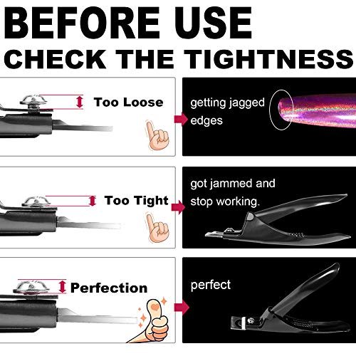 Details: ✂️ Made of Premium Quality Stainless Steel & High Quality Painting Material(Nitrogen Resin) — Good quality material guarantees you will receive an Excellent product✂️ Electrophoresis Processing Technique– Unlike other painting technique, this gives better protection to the clip and looks much more beautiful✂️ Powerful & Sharp Clip– Gives you full support to clip your nail very easily.✂️ Ergonomic Size–The length is approx 5.1 inches, suitable for different palm size of most of the people✂️ Suitable for acrylic false nails, artificial nails and natural nails– Almost all kinds of nail clipping could be used for.✂️Package include:1x Stainless Steel False Nail Tip Clipper Cutter 1x Replacing Cutting Blade 1x Screwdriver✂️TIPS:1.If you feel the clipper is stuck once you squeeze to clip, please check the tightness of the screw.