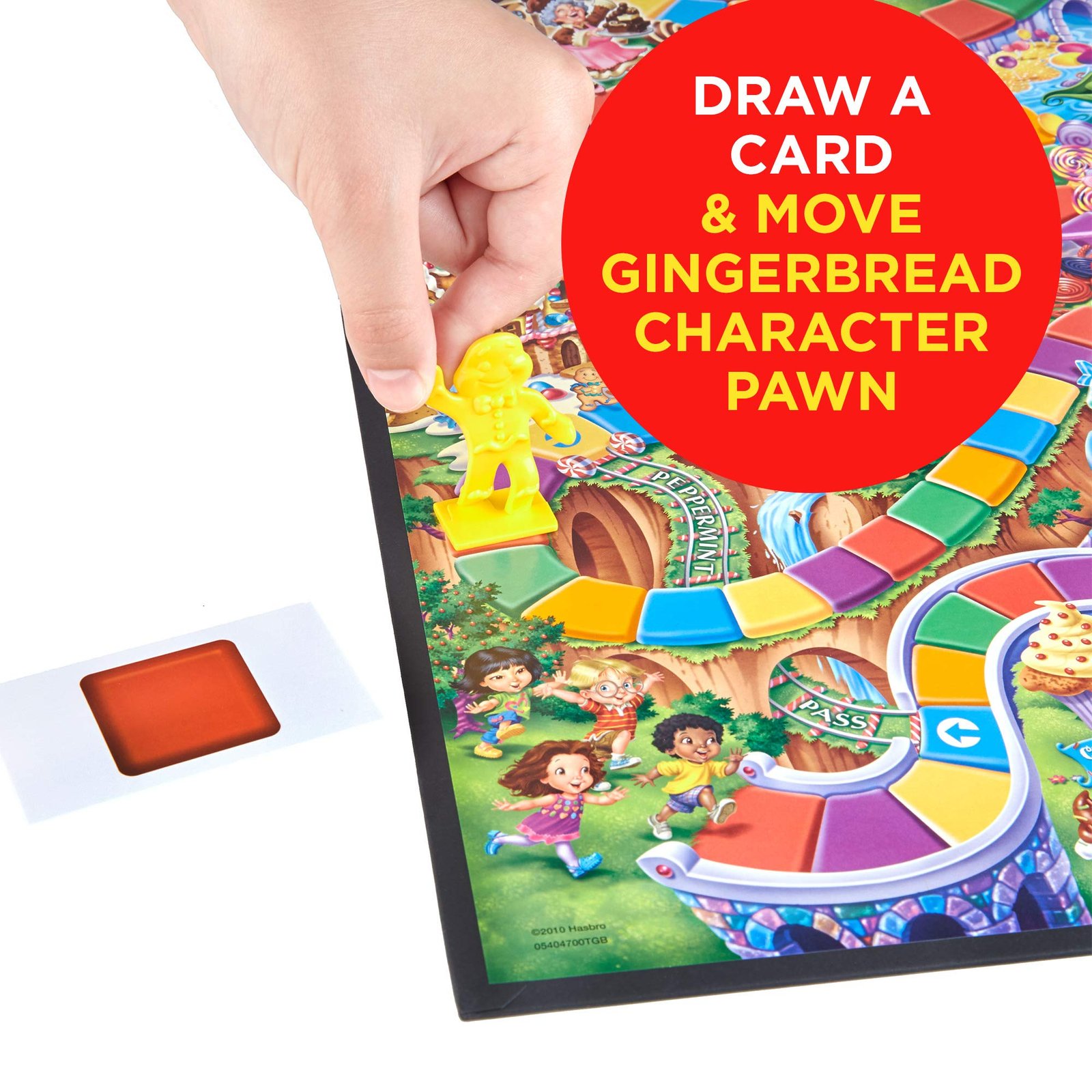 If you loved playing the Candy Land board game as a child, you can enjoy sharing the experience with your little ones and start down the “magical” road to sweet surprises! This adorable version of the classic Candy Land kids game features gingerbread men as movers, colored cards, and bright illustrations, with different destinations like Cookie Commons and the chunky Chocolate Mountain. Players choose their cards, move their pawns, and let their imaginations soar as they make their way to the castle to win! No reading is required to play this engaging family board game for kids; instead preschoolers can practice color matching. Kindergarten games like the Candy Land game are fun games for classrooms, playdates or Family Game Night. Indoor games for kids make great gifts for 3 year old girls and boys and up. Candy Land and Hasbro Gaming and all related terms are trademarks of Hasbro.
