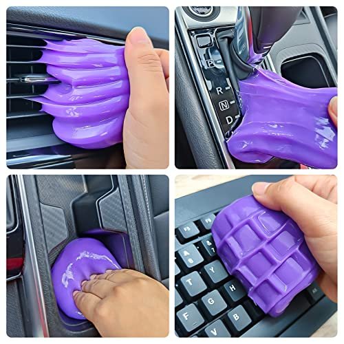 - 【Portable and Easy to Use】Take out the car cleaning slime, press it on the car air vent, cup holder, keyboard or other dusted areas, then pull out slowly, you can see the dirties are magically carried away by this car interior cleaner! No hassle of washing and drying, it also comes with a portable storage jar, you can take the car gadgets anywhere for daily use.