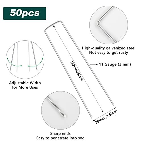FEED GARDEN Galvanized Landscape Staples 6 Inch 50 Pack 11 Gauge Anti-Rust Garden Stakes Landscaping Fabric SOD Pins Yard Stakes for Weed Barrier Fabric
