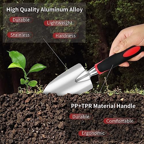 • 【Sturdy Stainless Steel Garden Set】- The ergonomic handle design of our garden tool set can provide a comfortable grip and reduce hand fatigue even during long gardening activities. The soft yet firm handle provides a secure grip and helps prevent slipping, helping you get your job done with ease.