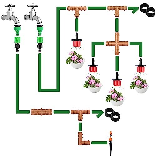 - 【WIDE APPLICATION】These tee fittings for 1/2 inch sprinkler hose is ideal for garden, flower bed, greenhouse, farm, lawn, patio and other agricultural watering system.