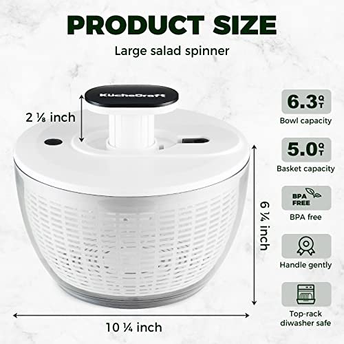 • The Perfect Gift: KucheCraft lettuce spinner has a stylish look and attractive packaging. It is a great gift for wives, friends, and food lovers for any occasion. If you need any help, please feel free to contact us, our professional customer support is always at your service!