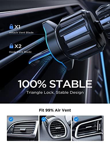 - 👍Compatible with Horizontal & Vertical Vents: The Steel hook clip of this cell phone mount for car is 50% longer than the ordinary one. It’s compatible with most Horizontal & Vertical vents, which solves the common problems of poor compatibility and cradle easy falling off on the market. We upgrade the iPhone car holder to meet all the needs of the car vent. Note: Round vents may not fit.