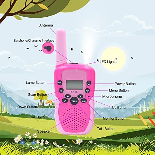 - Ergonomic Design & Durability: small lightweight ergonomic design with built-in flashlight make kids fit comfortably in children’s hands; A belt clip for easy attachment when not in use. An uncomplicated push-to-talk button makes kids walkie talkies boy easy to use