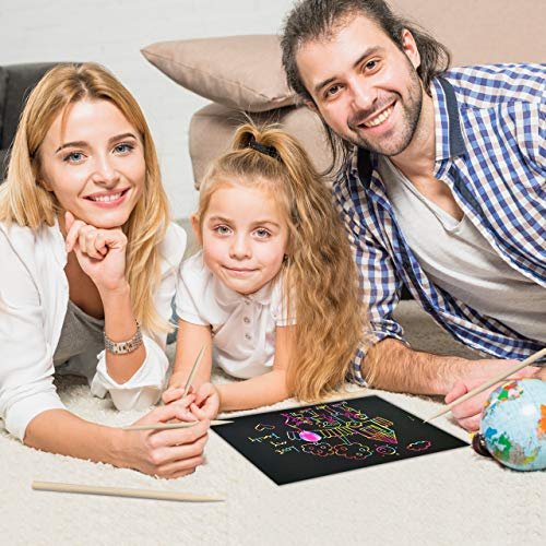 Makes an excellent children art supplies and grown-up artists! Immerse your kids in this delightful black paper scratch pad design away from e-sports games. Inspire your toddler to create physical representations of their imagination, helping encourage communication skills